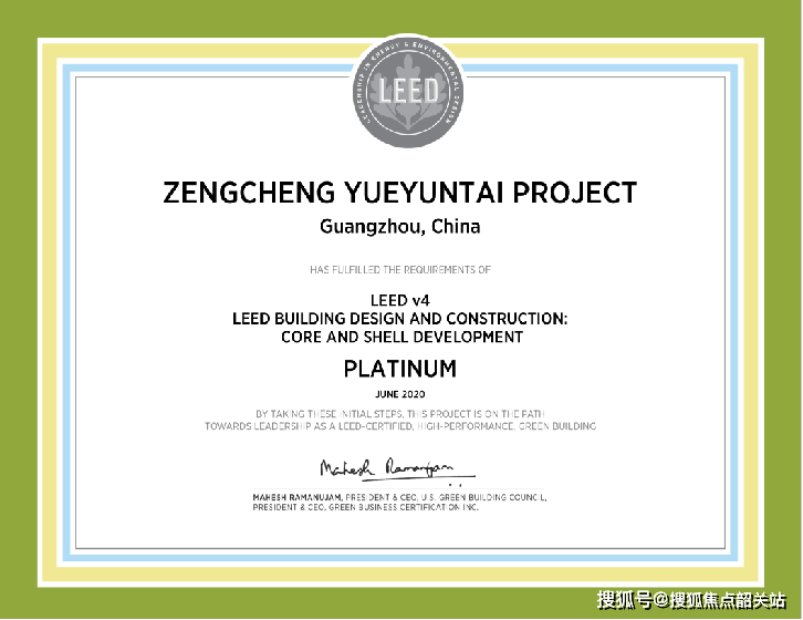 光大ONE+还以87分的认证评分通过了美国绿色建筑委员会(USGBC)绿色建筑大会LEED-CS铂金级预认证,成为广州增城首个铂金级的地标综合体项目。