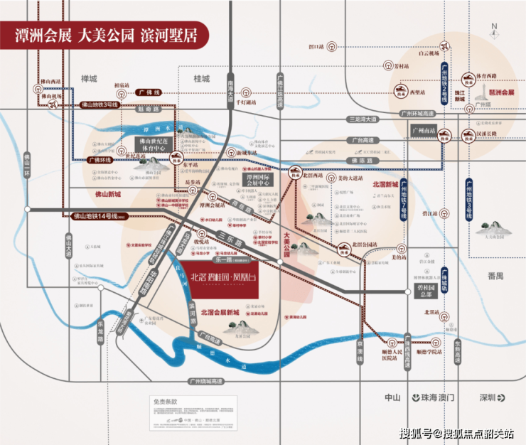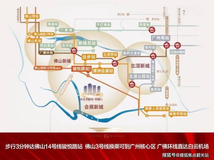 该项目依托三大核心干道(乐一路、三乐路、广台高速)形成畅通无阻的交通网络,实现了与佛山新城、北滘及广州核心区的无缝连接。同时,规划中的佛山14号线骏悦路站距离项目仅约0.5公里,步行约3分钟即可到达;已开通的佛山3号线潭洲会展站距离项目直线距离约4公里,车程约8分钟;在建中的广佛环线北滘西站则让居民能够快速抵达广州南站乃至琶洲,享受1小时粤港澳大湾区生活圈的便利。