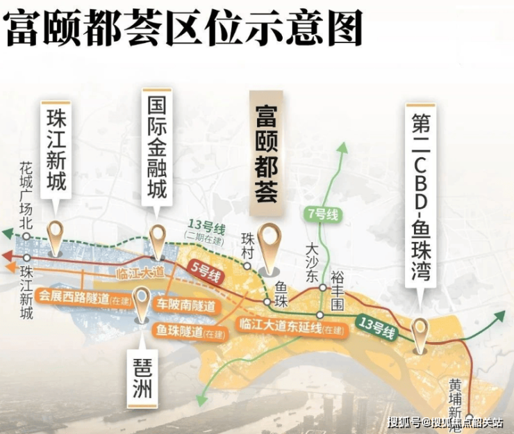 富颐都荟地处广州第二CBD的核心地段——鱼珠CBD板块,具体位置在护林路高新产业带旁。该区域作为珠江黄金8公里的一部分,未来将形成由国际金融城、临港经济区、琶洲组成的黄金三角区,是广州市最具发展潜力的区域之一。