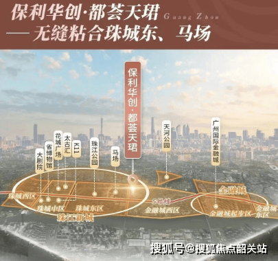 保利华创・都荟天珺坐落于珠城东、马场旁,地处华南快速和黄埔大道交汇处,与珠城东区仅一路之隔。西侧紧邻珠江新城东区,东侧为金融城核心区,往南与琶洲西区隔江相望,占据了广州三大核心商务区的黄金交汇点,地段优势得天独厚。这种绝佳的地理位置,使得业主无论是前往珠江新城的高端写字楼、金融城的金融机构,还是琶洲的互联网企业,开车 10 分钟交通圈均可轻松抵达,尽享城市核心资源带来的便捷与高效。