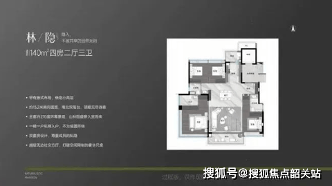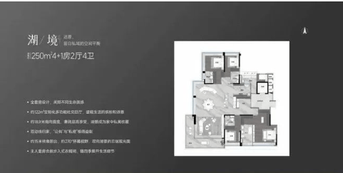 观樾由全球顶级设计团队联合打造,包括GAD公司负责整体规划,XAA执笔建筑立面设计,SWA操刀景观设计。项目采用板式小高层设计,户型面积从140平方米至250平方米不等,均为大平层设计,注重居住舒适度。户型设计方面,140平方米的四房三卫,双套房设计,独梯入户;190平方米的四房三卫,四开间朝南,拥有9.4米观景阳台;250平方米的四+一房,单边位设计,私密性强,配备超百平方米的方厅,两面观湖,一面望园林。所有户型均享有良好的采光和通风条件,部分单元可直接观赏湖景。