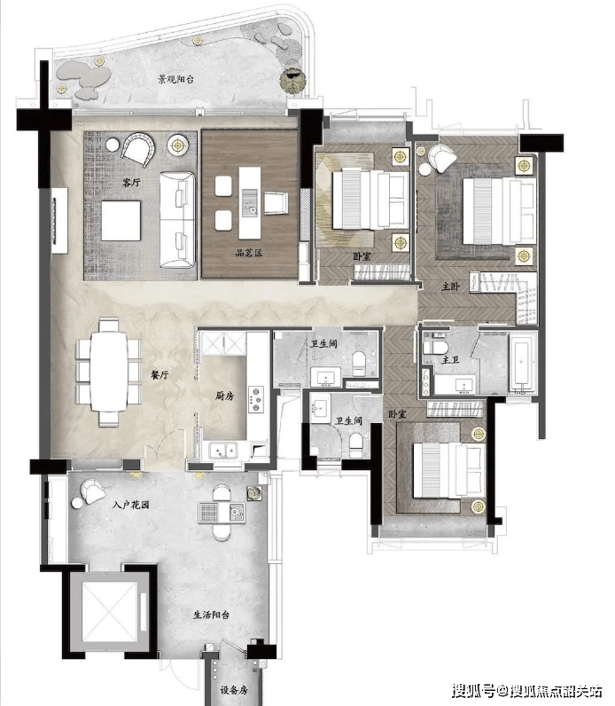 答:3 层户型可拓展 6 层使用空间,最高约 345% 使用率,两叠可做 7 房、三叠可做 6 房,全屋套房设计,完全满足多代同堂大家族居住需求。