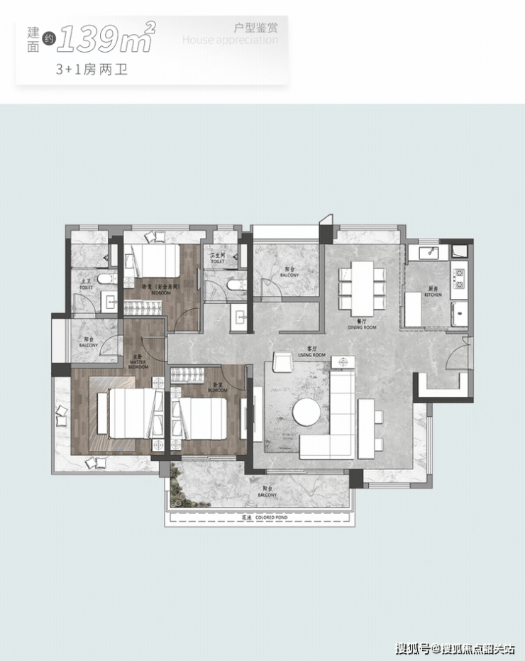 177㎡四房两厅三卫:独梯独户,私密性强;8.9米IMAX观景阳台直面中轴园林;双主卧套房设计,主套超30㎡,L型飘窗提升采光;另设灵活“4+1”空间,可改造为书房、酒吧或儿童活动区。
