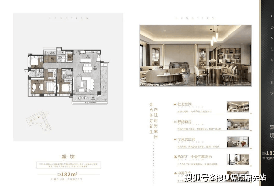 182㎡三房两厅三卫:虽为三房,但尺度奢阔。270°环绕式阳台长达16米,视野开阔;主卧配备双飘窗+步入式衣帽间;入门处隐藏储物柜可打造私人酒窖,细节考究。