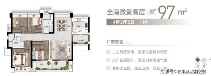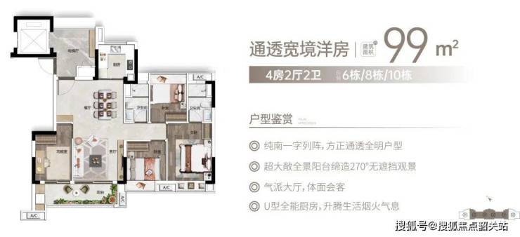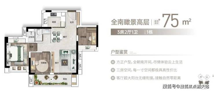 旭辉光屿南方主打约71-114㎡全南向光感洋房,三至四房布局。户型设计全开间朝南,动静分区合理,客厅连通大阳台,主卧配干湿分离主卫与衣帽间预留空间。厨房配备U型宽尺布局,满足家庭烹饪及日常生活需求。