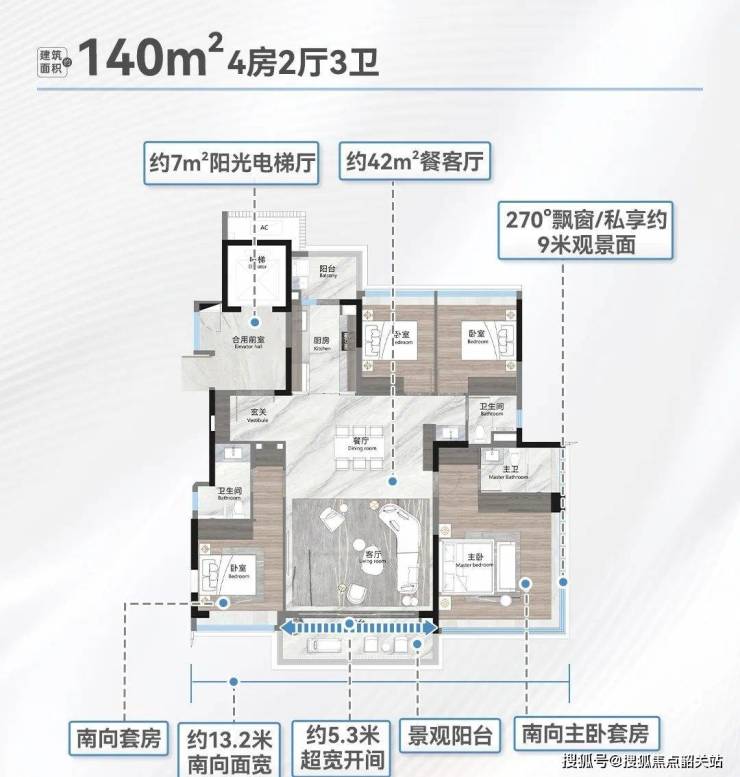户型面积:140㎡/190㎡四房,250㎡4+1房