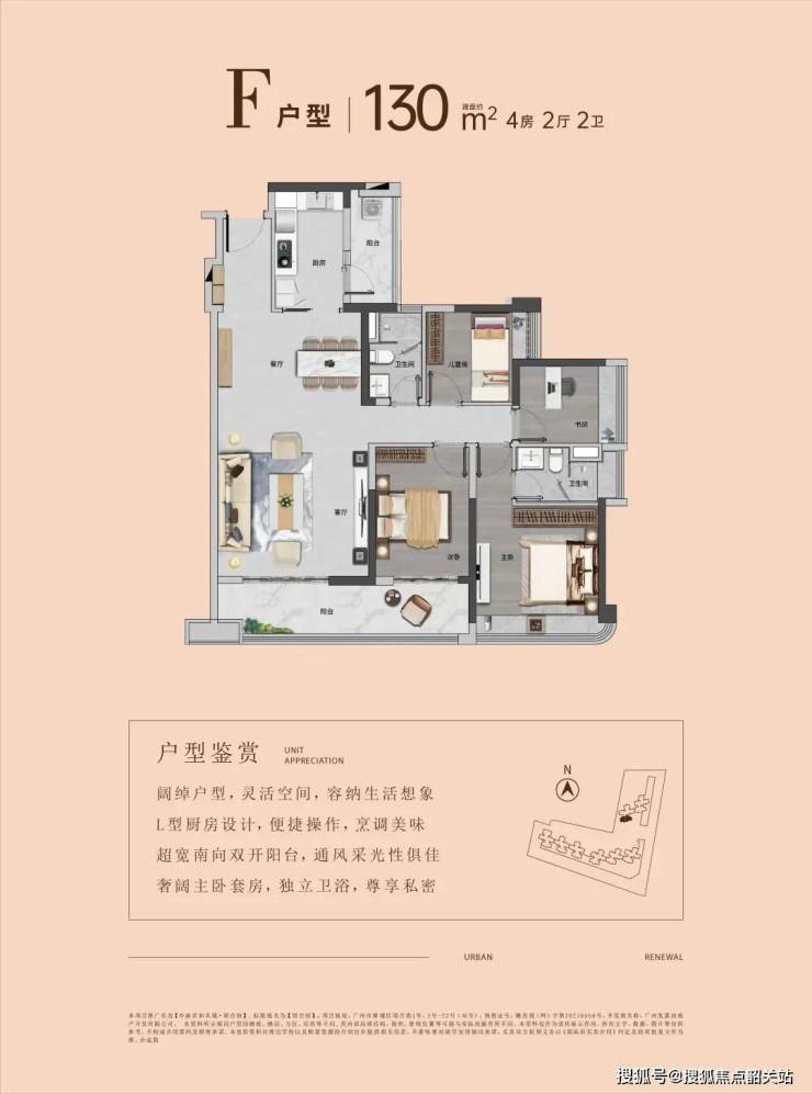 产品建面约86-130㎡三至四房,L型建筑布局,超宽楼距,采光充沛。