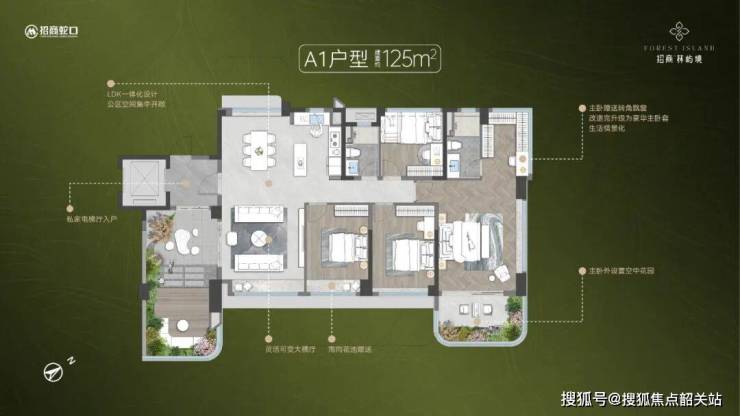 空中花园,创想无限:双南向空中花园设计,南露台约28㎡,主卧专享露台约15㎡,主卧露台+厅出露台,空中墅级奢享,多重观景视角,揽境入怀。
