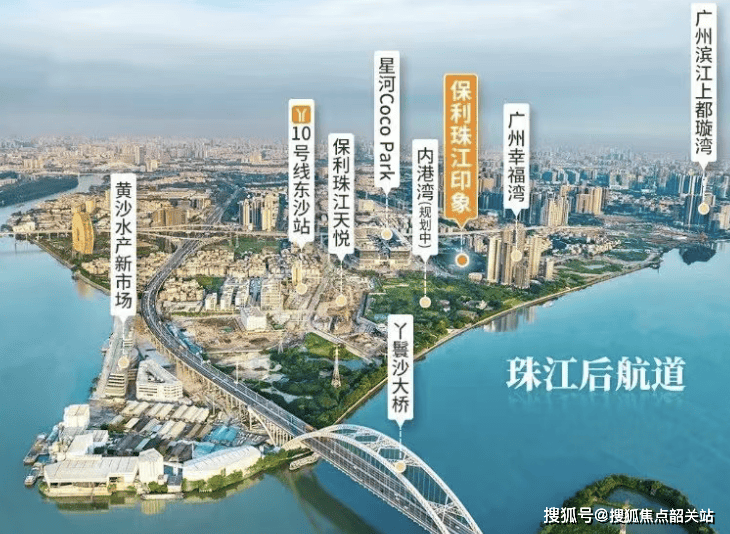 保利·珠江印象位于广州市荔湾区东沙板块,处于千亿打造的后航道沿江经济带,享受广州唯一世界级内港湾——8万方滨江水港。其所处位置堪称城市黄金地段,周边资源高度集中。从商业配套来看,项目西南侧体量约90万㎡的健康方舟已投入运营,其中约12万㎡的健康港星河COCOPark也已开业,有横店影院、万家MART等商家进驻,能满足居民日常的购物、娱乐、餐饮等需求。此外,周边还有约14.45万㎡三馆合一、约10.7万㎡新黄沙水产市场、约53万㎡全国首个双太古、约26.9万㎡万象城、约67万㎡广船商业综合体等,商业氛围浓厚,生活便捷性极高。在医疗方面,南方医科大学珠江医院、广州医科大学附属第二医院、广州市第一人民医院鹤洞分院等医疗机构环绕,为居民的健康保驾护航。2. **交通畅达**