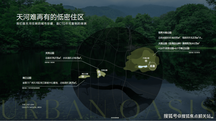 天河第三片绿洲,大观公园:公园用地面积约15万方,加上周边山林面积达到243万方,相当3.5个天河公园,8.6个珠江公园