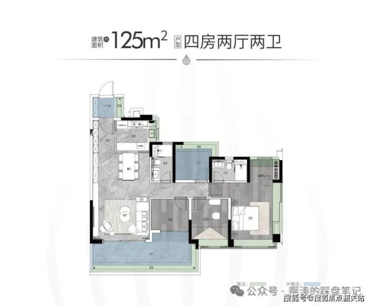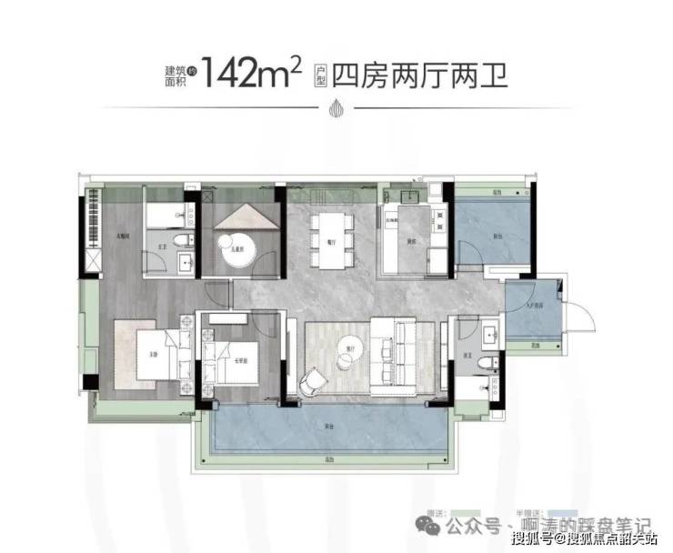 户型面积:建面约125-142㎡四房两厅两卫/214-319㎡大平层