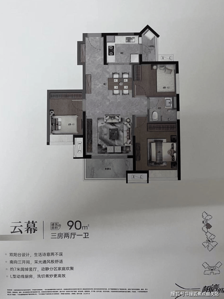 74㎡ ,号称广州最低门槛南向江景房的户型,这次没有开样板间。
