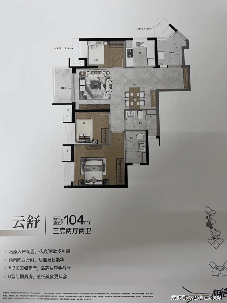 104㎡大三房,飞机户型没什么缺点,但是入户那里有多面积没办法用,估计只能做一个杂物间,总体来说有点浪费。