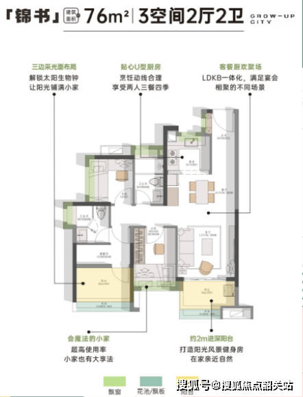 76㎡三房两厅一卫:年轻人的“首置神器”