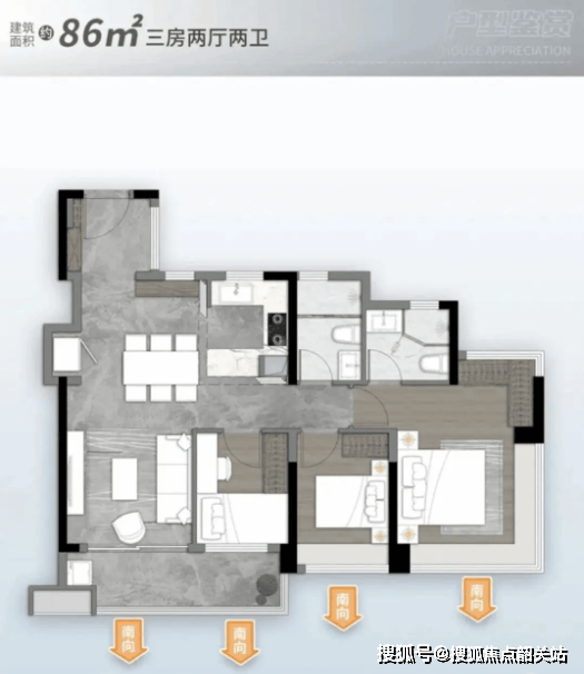 适合人群:三口之家、二胎家庭(可改四房)。