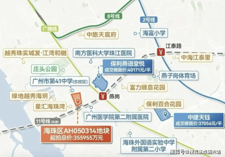 越秀·熙悦江湾所处的广纸板块是海珠区重点开发的区域,随着城市的发展,区域价值不断提升。项目周边交通便利,双地铁加持,11号线作为广州首条黄金环城线,已开通运营,与广佛线燕岗站形成便捷的交通网络,7站可达广州南站、7站可达琶洲,能够快速链接全城,虹吸广佛优质资源。