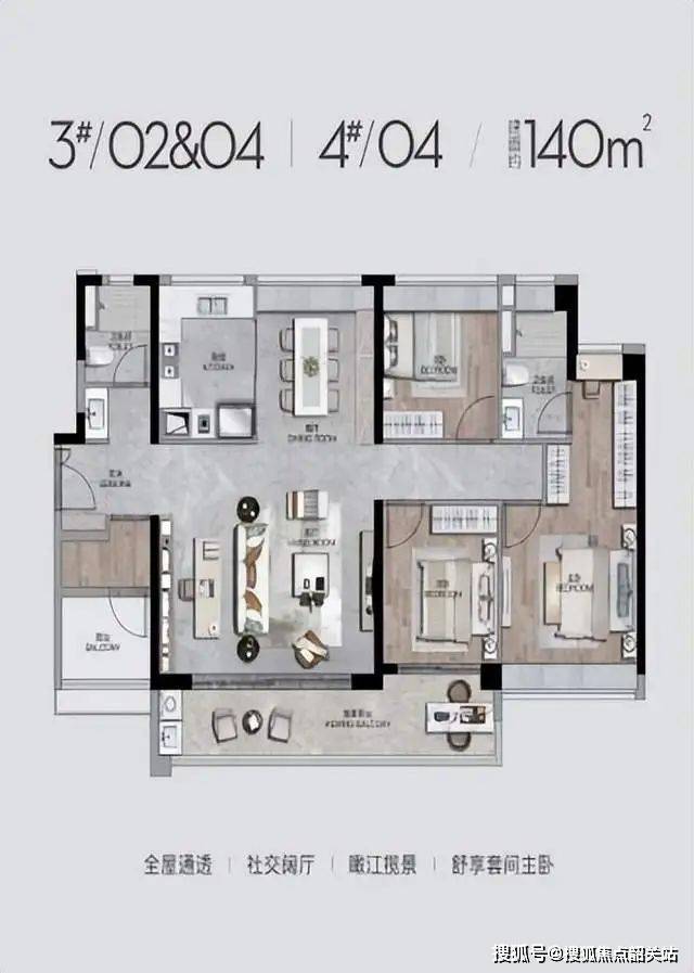 高端住宅典范:占据横沥岛尖「一线头排」稀缺位置,享有270度无遮挡海景视野,三面环幕江景,提供了至尊享受。