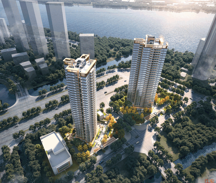 保利珠江印象以“全龄化社区”为核心,打造“一轴两环三园”景观体系: