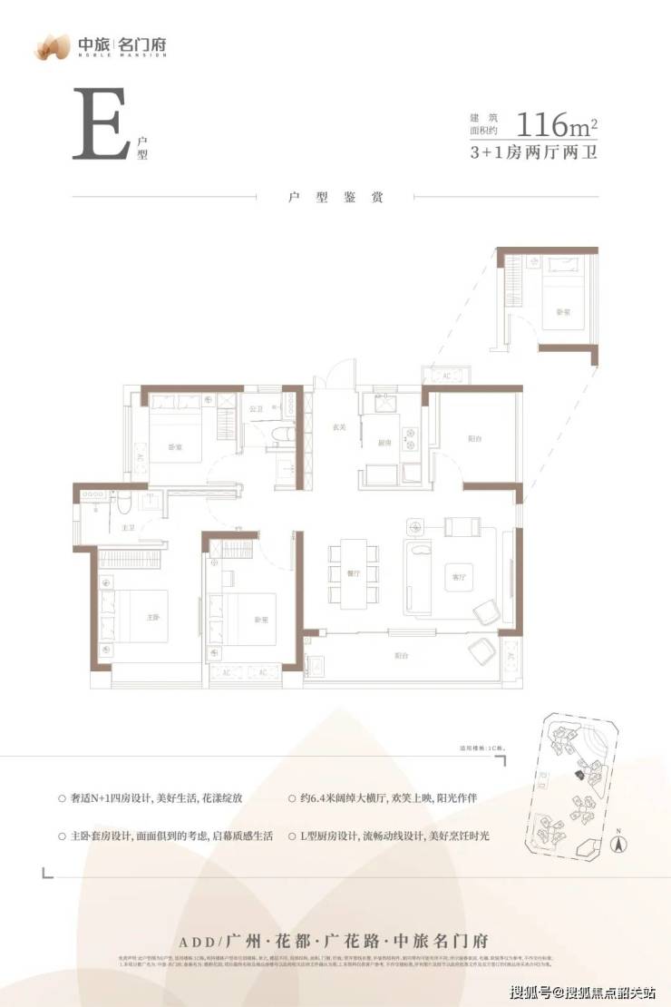 中旅名门府建筑采用蝶形布局、点式独栋设计,整体南低北高格局,实现南向采光面最大化,在售户型为80-101㎡全南向三至四房,极致20层高保障每户的通风采光及景观视野。