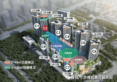 答:楼栋采用高低错落排布+东南45°倾斜设计,拉大楼栋横向间距,减少楼栋遮挡,保障每一户采光通风与私密性,高台基设计规避地面干扰,低密社区格局,居住舒适感大幅提升。