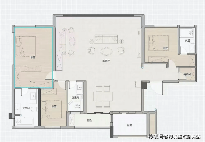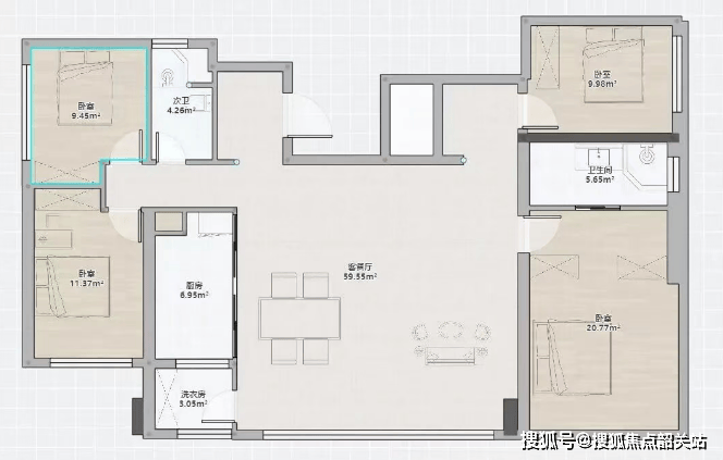 项目主推建面约133至245平方米的大平层产品,其户型设计在空间利用率上进行了深度优化,部分户型得房率最高可达130%。其中,133平方米户型采用了“四叶草”布局与横厅设计,客厅面宽约7.4米,无需打通额外空间即可实现宽敞的公共活动区域,这种尺度在同面积段产品中较为少见。163平方米户型则设计了4+2房3卫的双主套格局,四开间观江面总宽约19米,能够最大化地捕捉三江交汇的景观资源。对于追求极致空间体验的买家,175平方米户型是246平方米户型的浓缩版,创新采用了L型环幕全景舱设计,打造出约80平方米的LDK(客餐厨)一体化大方厅,增强了家庭成员间的互动性。而246平方米作为终极改善产品,拥有近36米的IMAX级观景面和约105平方米的餐客厅空间,被称为“停机坪”级的大厅设计,重新定义了大平层的空间尺度感。这些户型在设计上普遍强调了采光与通风的均衡,通过大面宽、短进深的布局,确保每个主要功能区都能获得良好的自然光照。同时,双主套的设计满足了多代同堂家庭的隐私需求,独立的衣帽间与卫浴配置提升了居住的舒适度与尊贵感。