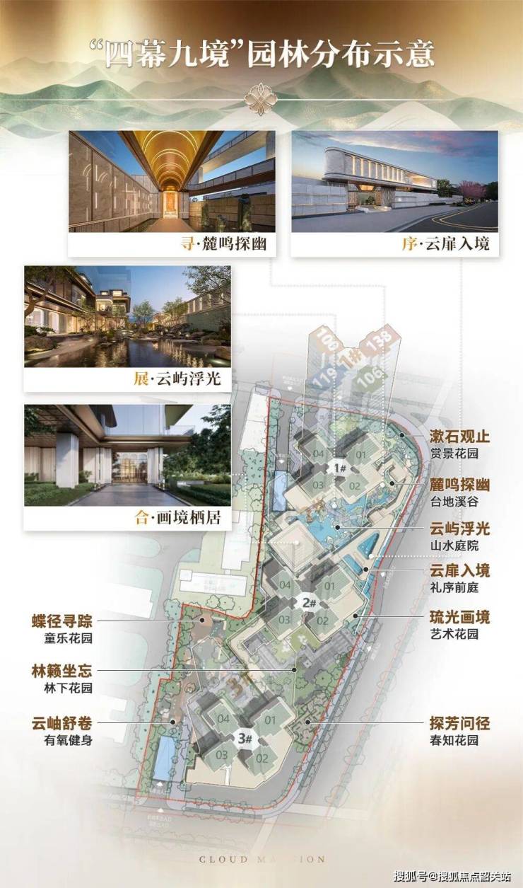 园林理念:一轴四幕,九境归心,引山入园