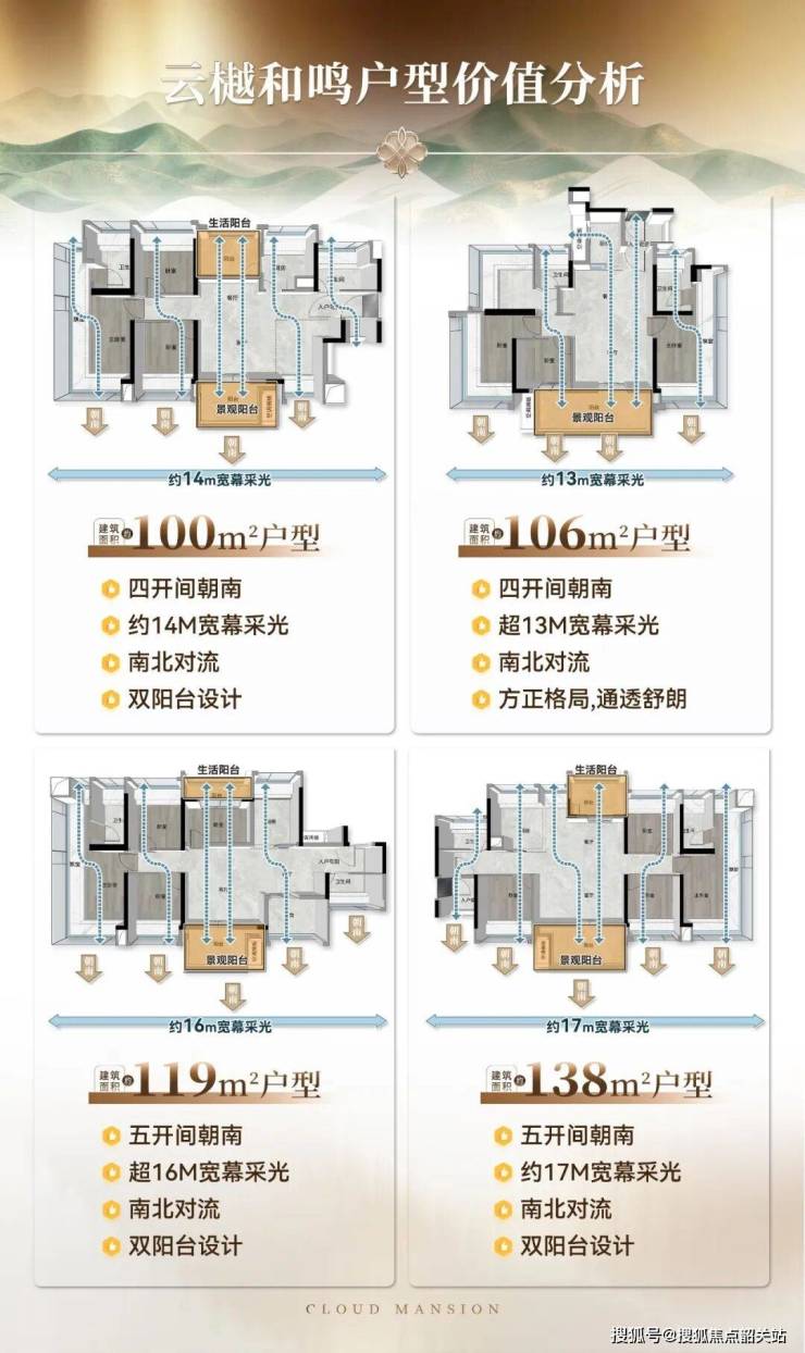 主力户型:建面约 100-138㎡全能四房