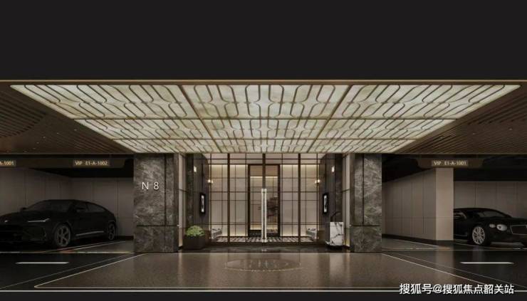 车库入口配置星空穹顶,搭配奢华型迎宾背景墙,内部打造透光云石穹顶、铝格栅吊顶、仿石漆天花、高品质金刚砂+地坪漆双重工艺等豪奢配置。穿越奢华的归家路,际遇层峯的尊崇归家礼序。