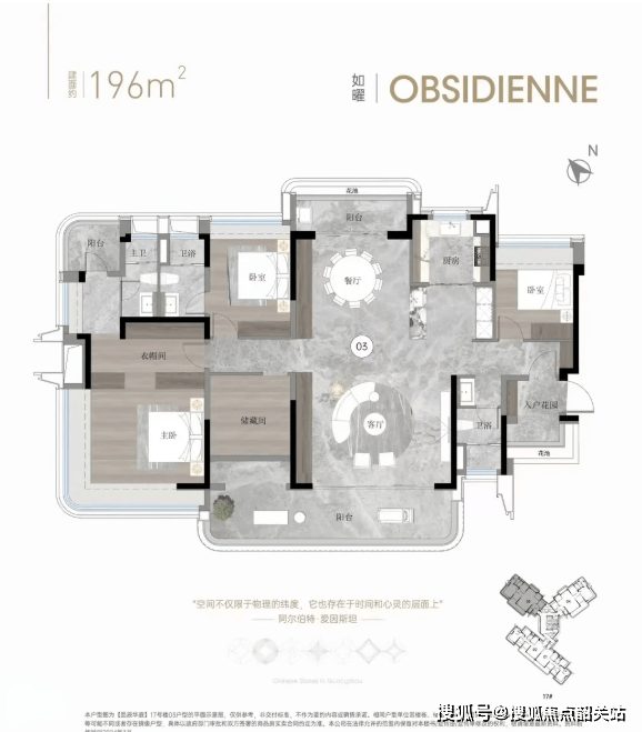 以176㎡户型为例,其设计堪称教科书级别。外部搭载独立专享电梯厅,面积堪比一个房间,既保障了功能性,又极具归家仪式感。入户玄关采用转角式设计,巧妙规避了视线直穿,完美保护隐私。室内采用集中式公区布局,高频使用的功能区置于中心,其他区域环绕分布,塑造出流畅的洄游动线,零浪费空间。LDKB一体化大方厅气场磅礴,兼具极强的社交属性。南北双阳台设计,让居家休闲与晾晒观景互不干扰。卧室系统采用主次卧分区,保障家庭成员隐私,多套房化设计最多可形成3个有效套房,完美适配多代同堂或多孩家庭。