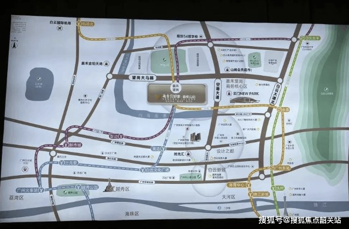 在通达性方面,嘉禾望岗堪称“王者”。它能0换乘联通广州四大超级枢纽,即白云机场、广州南站、广州火车站、广州东站,高效的“出发/抵达”能力,使其天然成为城市门户。不仅如此,嘉禾望岗还能直连广州八大核心商圈,涵盖天河北、体育西、珠江新城等,且无需换乘,如此强大的交通能级,放眼全国都实属罕见。此外,作为陆空联运枢纽,它还是连接白云国际机场与中心城区的陆路核心通道,机场高速、华南快速、空港大道组成的路网,助力“北优”目标中发展空港经济、优化产业布局。基于嘉禾望岗这般核心地位,越秀地产果断出手,以4.81亿拿下相关地块,溢价率达16%,足见对其潜力的看好。