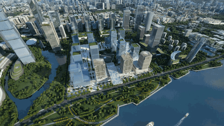 **小区花园空间**:项目注重园林空间打造,高层和顶层多方位打造绿色江景空中花园。园区绿化率达到30%,融合了自然生态元素,不仅为业主提供了休闲放松的空间,还能让业主在繁华的城市中享受到自然的宁静与美好,营造出静谧宜人的居住和办公氛围。
