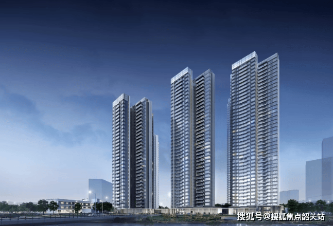 建筑外立面采用现代公建化手法,以玻璃塔冠与集约式点式楼型构建出清晰的城市标识。四座方形体块组合而成的塔楼,摒弃了传统住宅繁复的装饰线条,转而追求大面积玻璃幕墙与精致金属构件的理性结合。银白色氟碳漆铝板与古铜色氟碳漆铝合金型材格栅在单元入口处形成材质对话,既强化了归家仪式感,又避免了过度奢华带来的距离感。尤为值得关注的是0.32的超高窗地比设计——这意味着每平米建筑面积对应0.32平米的采光面,远超行业常规标准。满窗设计不仅提升了室内光照均匀度,更将外部景观最大化引入视野范围。从城市界面看,这种平整通透的立面语言使建筑群在阳光下呈现出轻盈优雅的视觉效果,与周边规划中的金融岛天际线形成和谐共振,而非突兀存在。