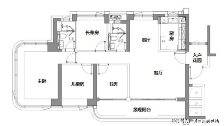128㎡四房两卫:宽幕观景大宅,户型方正,布局合理。