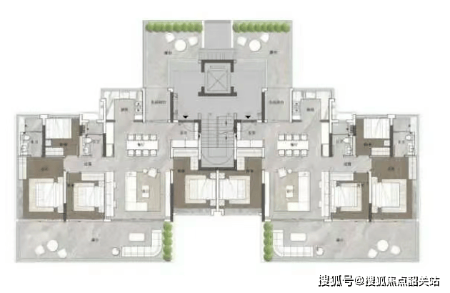首层叠院(建面约115㎡):这是全盘使用率最高的“王炸”户型。四房两卫的格局,满足了多代同堂的居住需求。最令人震撼的是,它赠送了约170㎡的双花园。想象一下,前庭种花,后院品茶,孩子在草地上奔跑,老人在藤椅上晒太阳。这不仅仅是房子,这是一个私家的空中庭院,是都市中的桃花源。