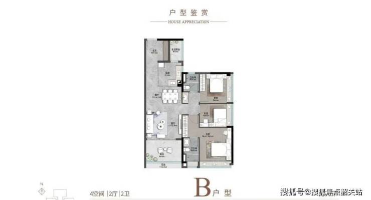 建面106平3+1房:设计巧妙,利用阳改房空间实现了四房布局。
