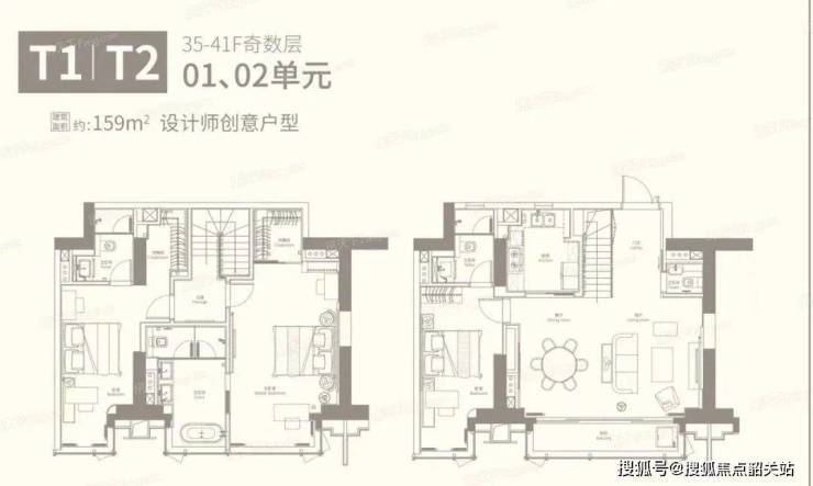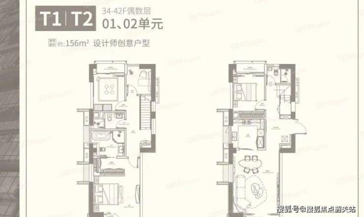 34-43层:中区3.3+3.3米(约156-159㎡复式),3梯2户,精装交付