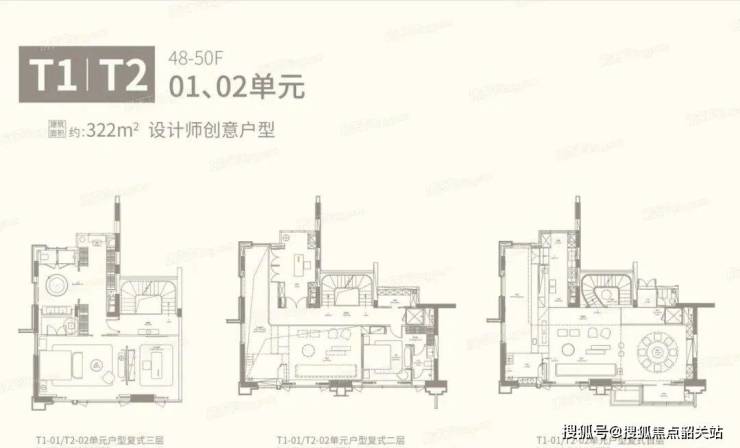 48-50层:特高区3.6+3.3+3.3米(约322㎡复式),3梯2户,毛坯交付
