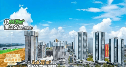 小区内有 3.6 万㎡中央园林,外靠 65 万㎡滨江公园,两者通过商业街区公园与滨江绿道相连,业主可自由穿梭,生活场景丰富。小区内设有超大泳池和儿童池,营造海岸度假风情。大门景墙、入户大堂及车库设计精致,细节处彰显品质。全社区通过扭转楼栋实现景观视野最大化,户型全南向四面宽,采光与通透性良好,采用围合式布局设计。