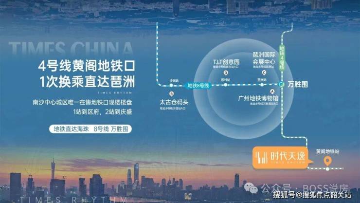 时代天逸(广州)项目是时代中国落子南沙的第6子,位于南沙自贸区庆盛枢纽+区府板块。4号线黄阁地铁站上盖,1站到区府,2站到庆盛,一次换乘接驳广州5号线及广深港高铁,打造地铁口大型生活社区。