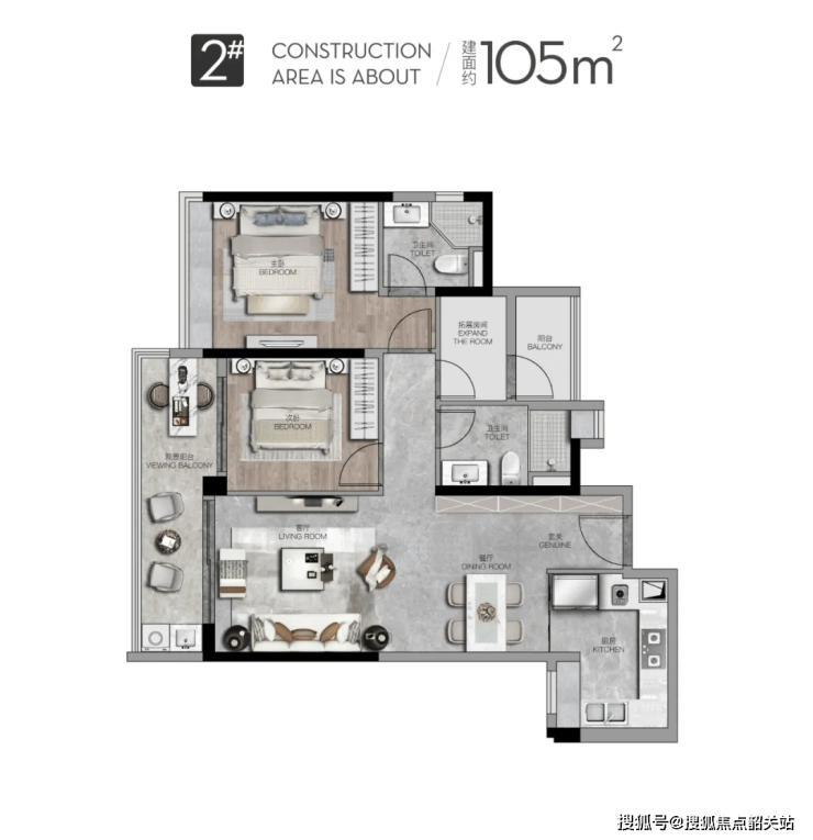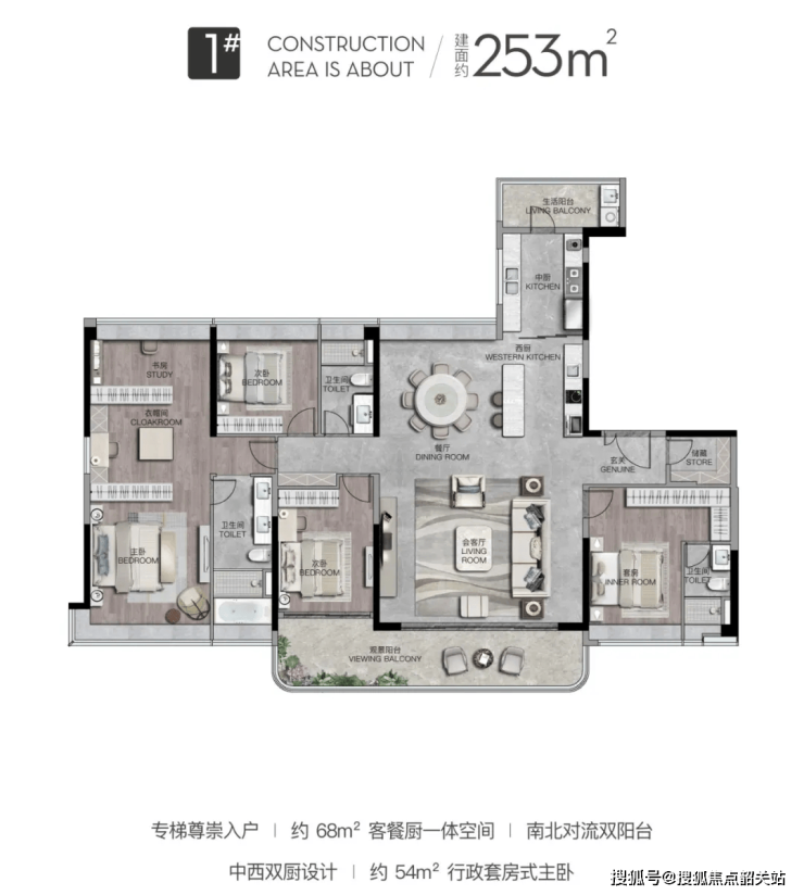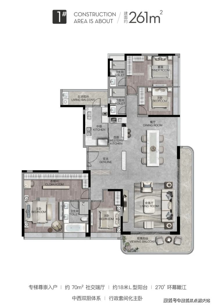 南北通透:双阳台设计,南向瞰江视野,北向私享园林景观。