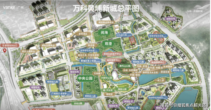 万科黄埔新城自带完善教育体系,规划六所幼儿园、两所小学、一所九年制学校及一所高中,同时周边配套广铁一中铁铮学校及开发区外国语学校,提供从幼儿到高中的全龄优质教育。商业配套包括约13万平方米大型购物中心、约9万平方米写字楼和约5万平方米星级酒店,以及社区内多样化商铺、超市和餐饮设施,满足日常生活和休闲需求。医疗方面,项目毗邻广州开发区医院、广东中能建电力医院及黄埔区第十二人民医院,实现社区医疗资源全覆盖。社区还规划约4万平方米绿核公园、20个口袋公园及7.6万平方米水域景观,结合滨水古街与运动公园,打造自然健康生态居住环境。