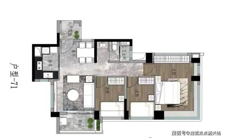 3号楼,5号楼,6号楼的户型一样,三梯六户,总层高47层。