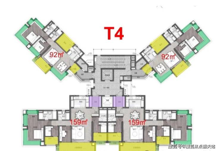 2号楼,两梯四户,总层高47层,面积有92-159方两种户型。