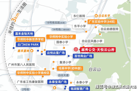作为广州首个公交TOD项目,《越秀公交天悦云山府》提供了卓越的交通便利性。项目整体抬高18米,楼下架空层为阳光观景车库和阳光公交站场,下楼即上车,无缝接驳地铁2号线、3号线、14号线及在建的18号线,半小时内通达广州主城中心。自驾出行也非常方便,小区门口即是白云大道北。此外,虽然距离最近的地铁站有一定距离,但公交接驳系统完善,解决了“最后一公里”的问题,尤其适合依赖公共交通的年轻人。