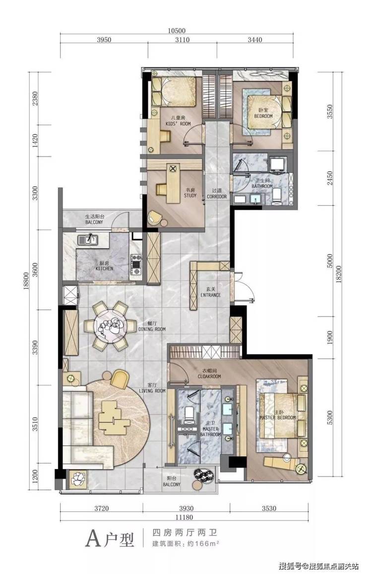 户型设计注重空间成长性:166㎡四房户型采用“四开间朝南+双阳台”布局,客餐厅开间达4.5米,主卧面积超25㎡;207㎡四房户型配置独立入户花园、南北双阳台,主卧套房含书房与步入式衣帽间,满足多代同堂需求。通过定制化收纳系统(如嵌入式柜体、阳台储物柜),空间利用率提升约15%,兼顾功能性与奢华感。