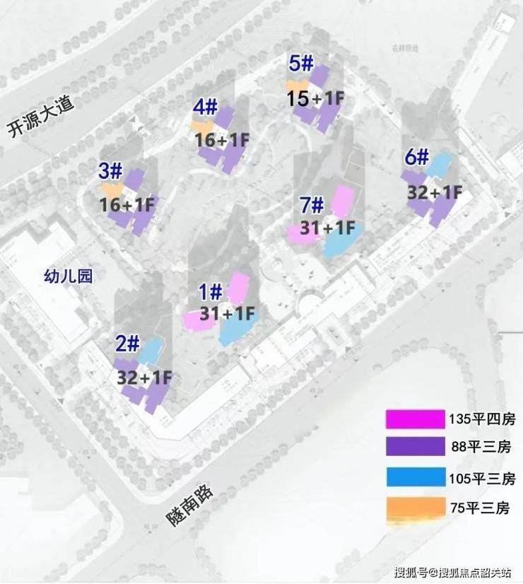 整个项目7栋商品住宅,前排4栋32-33层,后排3栋16-17层,