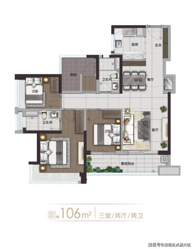 建面约86㎡ 2+1房2厅2卫 精致3房
