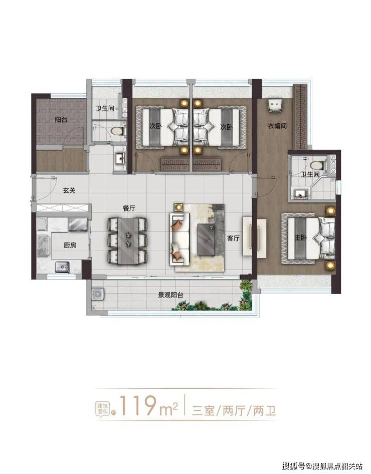 建面约119㎡ 3+1房2厅2卫 舒适4房
