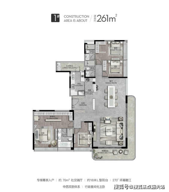 在产品打造上,西派·澜岸更是将江景美学融入每一个户型设计之中。无论是约253-260㎡的大平层豪宅,还是约125-140㎡的改善型住宅、央景品质大宅,都充分考虑江景视野与居住舒适度,采用大开间、宽阳台的设计,最大化拓展瞰江视野,让业主在室内就能尽情欣赏江景风光。以260㎡4房3厅3卫的大平层户型为例,超大面宽的客厅搭配全景落地窗,将江景直接引入室内,无论是家人相聚、朋友宴请,还是独处休憩,都能与江景相伴,彰显塔尖人居的奢华与舒适。而约125-140㎡的户型,则在保证江景视野的同时,兼顾实用性与舒适性,合理的空间布局、充足的采光通风,让每一位家人都能拥有舒适的居住空间,享受江景带来的美好。