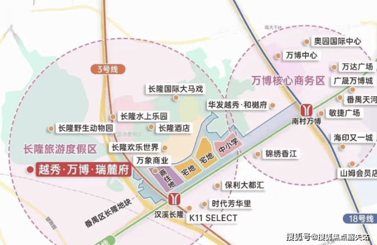 9. 越秀·万博·瑞麓府虽非拥有【区府+TOD】双核心联动发展的项目,但依托长隆万博CBD的商业核心与地铁7号线钟村站的交通优势,具备类似的发展潜力。长隆万博CBD作为商业与文旅核心,汇聚了大量产业与消费资源,推动区域价值提升;地铁7号线钟村站为项目带来便捷交通,属于TOD辐射范围。这种“CBD核心+地铁”的模式,如同双核心联动,既享受CBD的繁华与发展红利,又借助地铁提升出行效率,成为区域内极具竞争力的改善型项目。